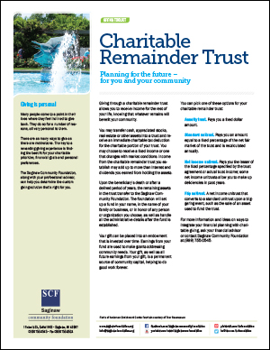 For more information and ideas on ways to integrate your financial planning with charitable giving, ask your financial advisor or contact Saginaw Community Foundation at (989) 755-0545 or via email.